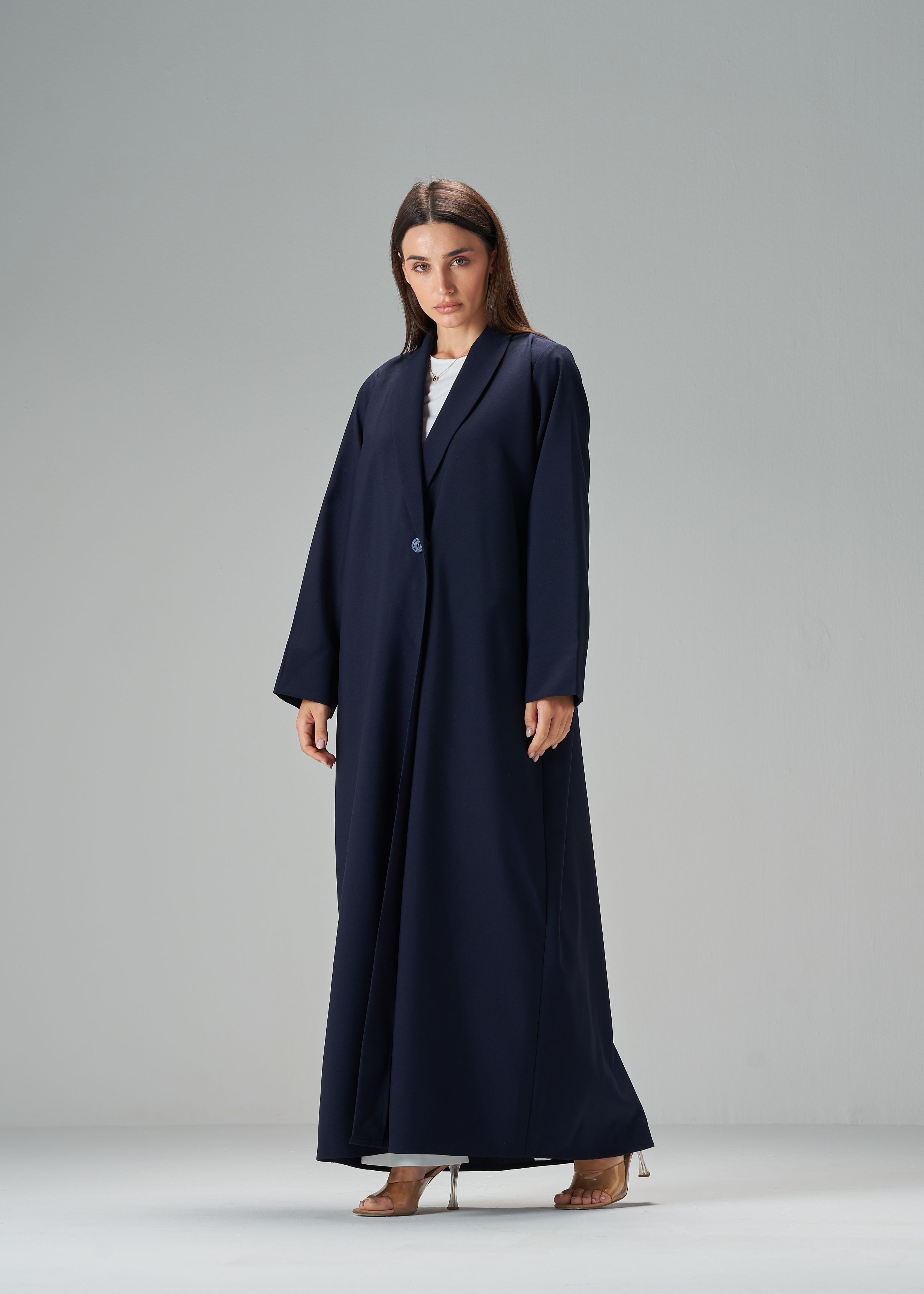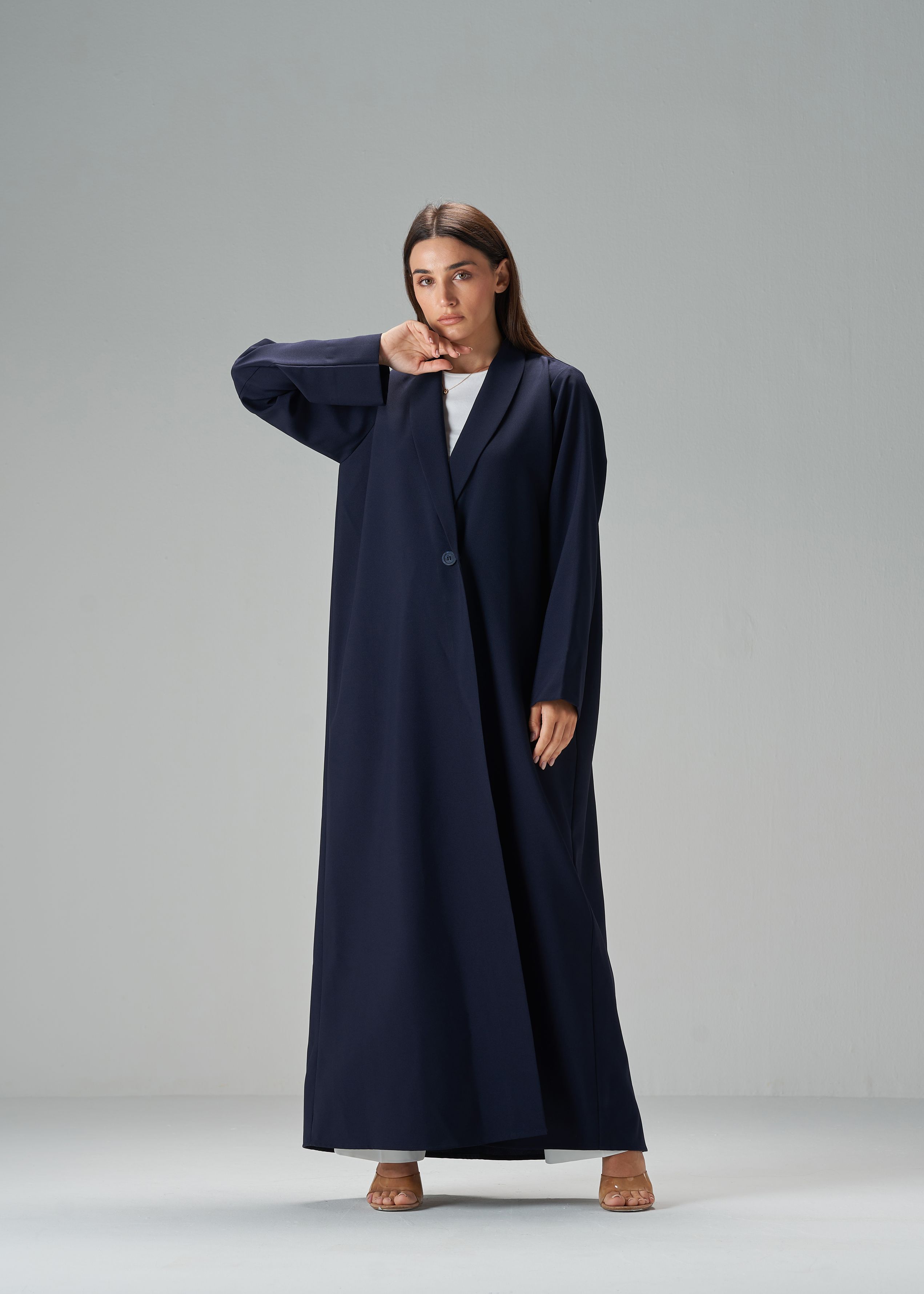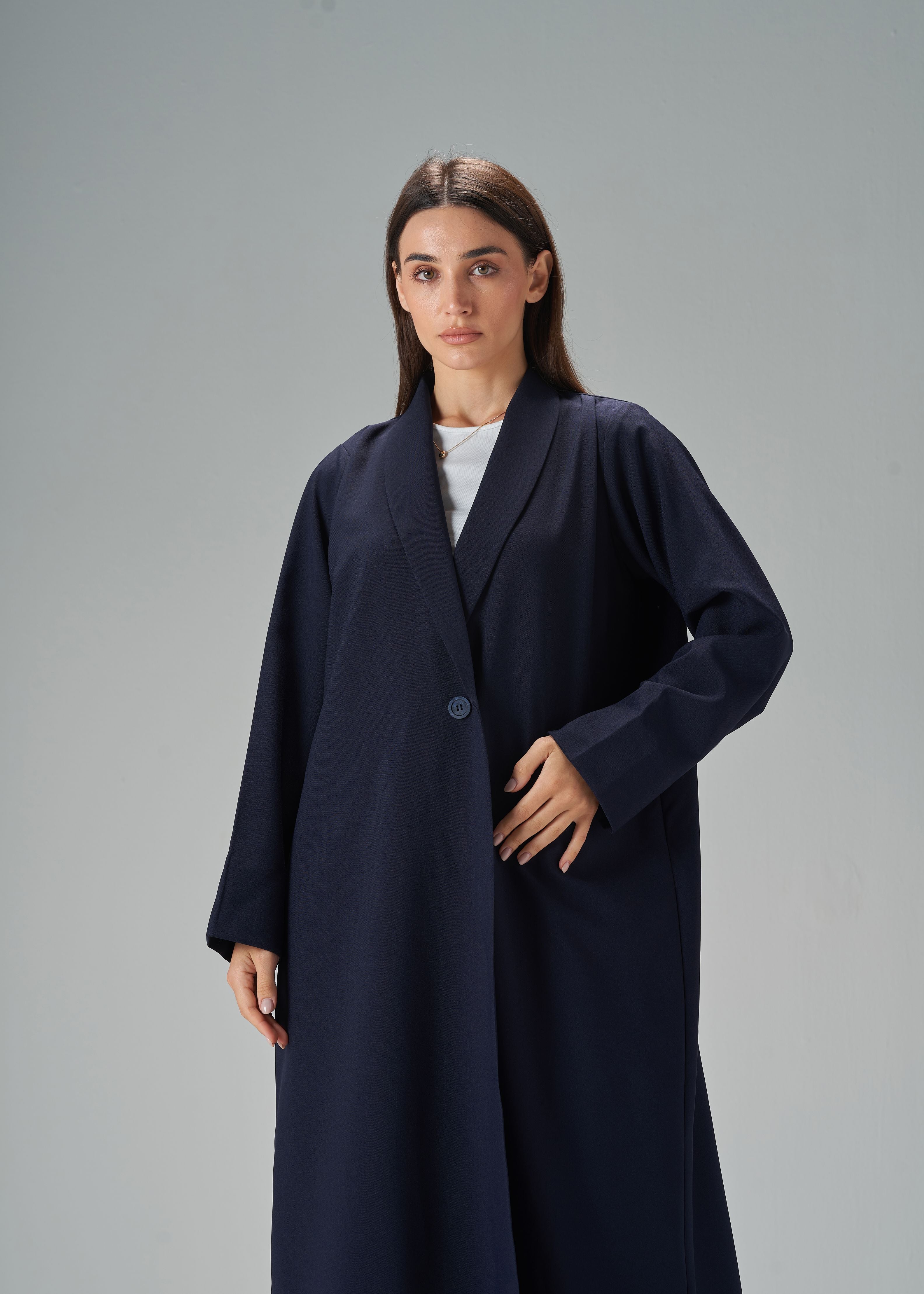 A timeless wardrobe essential crafted in dark navy with a signature center button. This classy, minimal blazer is perfect for work meetings or evening outings — structured, elegant, and effortlessly polished. Comes with a matching shaila for a complete look.